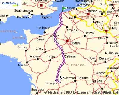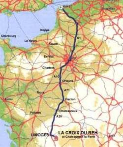 After joining the A71 at Orleans, travel south until the autoroute splits at Vierzon and take the A20 to Limoges via Châteauroux. At present this autoroute is free of all toll charges.