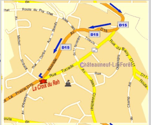 The D15 leads you into the village of Châteauneuf-la-Forêt and La Croix du Reh will face you at the top of the hill!